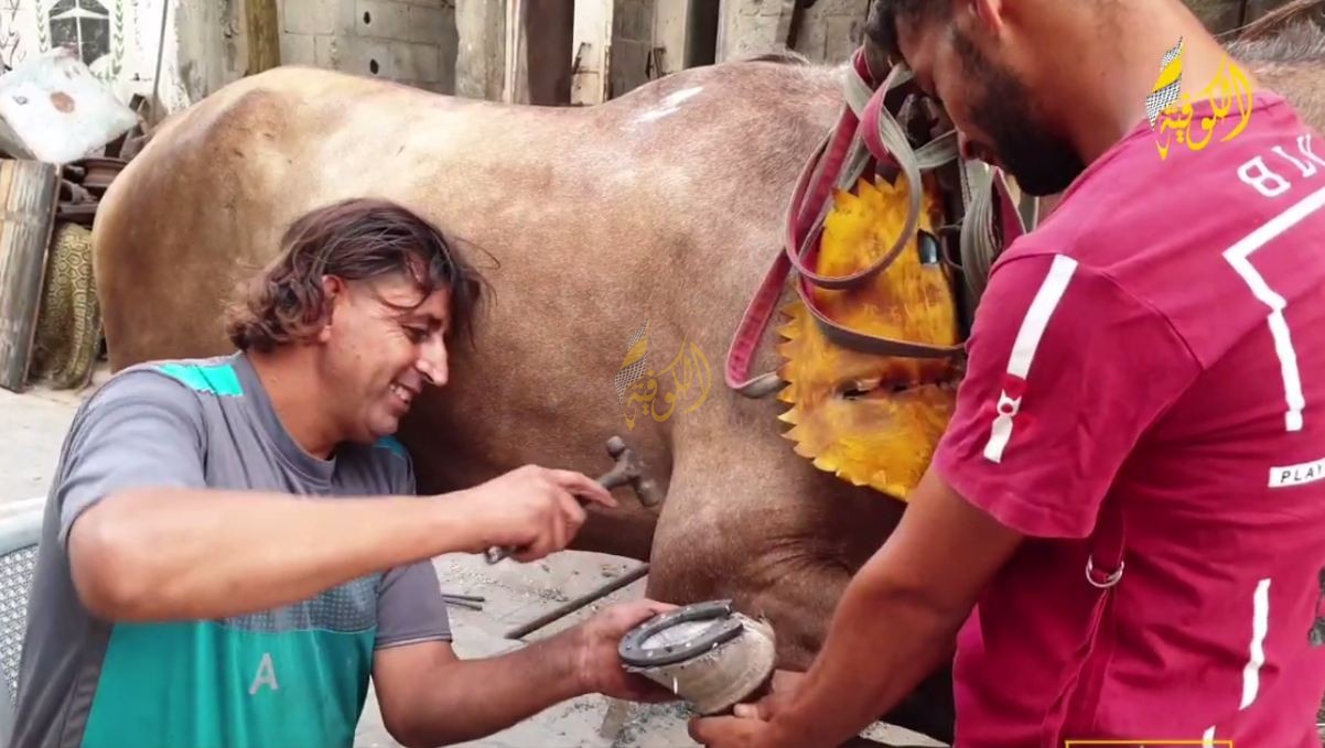 وأضاف "السر" أنه يعمل في مهنة "تركيب حدوات الأحصنة" منذ 30 عامًا، مشيرًا إلى أن أسعار تركيب الحدوات تتراوح بين 5 و10 شواقل، موضحًا أن فائدة الحدوة للحصان تتمثل في أنها تحميه، كما هو الحال في السيارة التي لا تستطيع السير بدون "كوشوك".