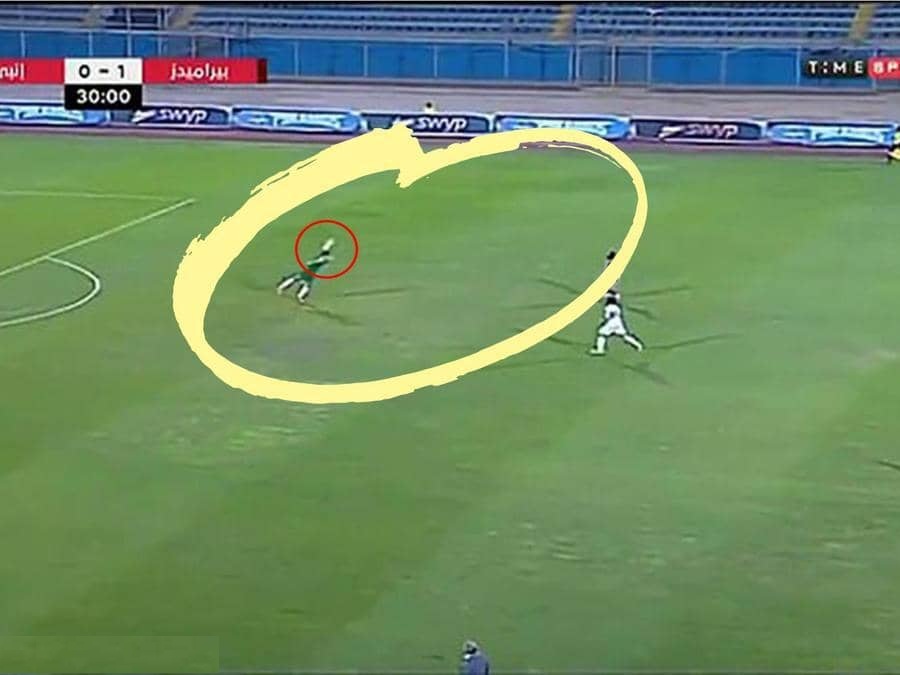 في البداية، لاحظ جاد أنه تم تمرير كرة عرضية عبر الملعب بين لاعبين من فريق بيراميدز، فخرج من منطقة الجزاء ليقطع الكرة من أمام لاعب بيراميدز المندفع برأس ، وسرعان ما انتشر الفيديو على صفحات تويتر وانهال المديح للحركة الرائعة من محمود جاد، التي أثارت ذهول كل من شاهدها تقريبا.
