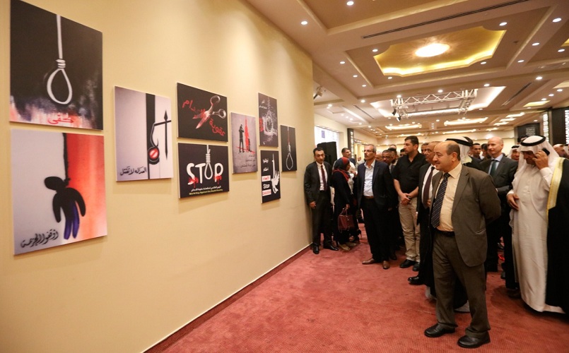 وضم المعرض الذي أقامه مركز إعلام حقوق الإنسان والديمقراطية "شمس"، ومكتب المفوض السامي لحقوق الإنسان، 70 لوحة فنية، لـ 4 فنانين فلسطينيين، جسدت رفض عقوبة الإعدام.