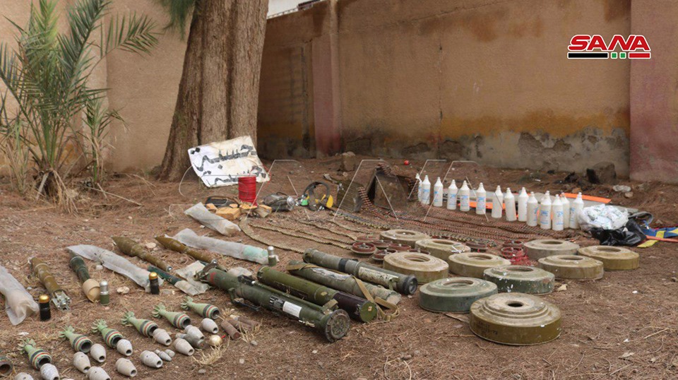 وكانت الجيش السوري قد ضبط الشهر الماضي، "كميات كبيرة من أسلحة وذخائر أمريكية وإسرائيلية من مخلفات التنظيمات الإرهابية ، بينها عشرات صواريخ الغراد وطائرة مسيرة وأجهزة اتصال وجهاز كشف معادن.