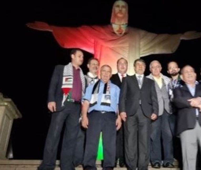 ريو دي جانيرو – وكالات:-  توشح تمثال السيد المسيح عنوان مدينة ريو دي جانيرو البرازيلية مساء أمس الخميس، بألوان العلم الفلسطيني، تعبيرًا عن الحق الفلسطيني بالعيش في أمن وسلام، وإنهاء قرن من المعاناة، في حفل أقيم خصيصًا لهذه المناسبة.