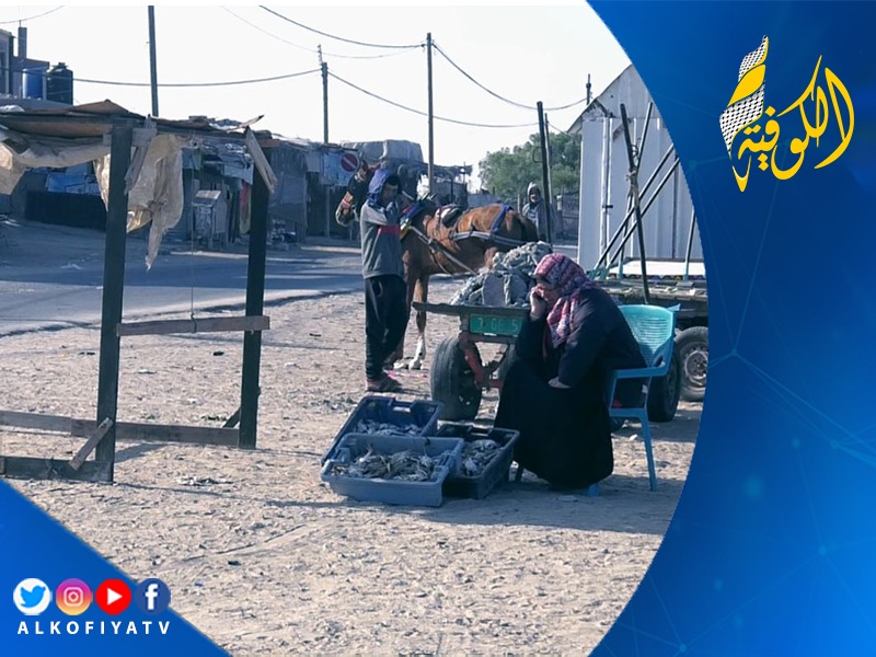 الحاجة أم جميل القرعان "47 عاما"، التى تقطن في مدينة دير البلح وسط قطاع غزة، تعول أسرة من خمسة أفراد منهم اثنان من الأبناء يقومان بمساعدتها ببيع السمك، لسد الديون المتراكمة على العائلة.