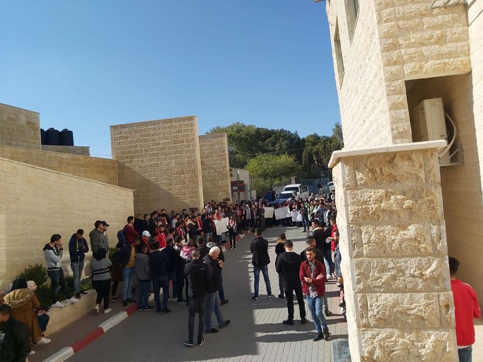وفي وقت سابق دعت الحركة الطلابية في القدس، أمس الثلاثاء، بتعليق الدوام بعد الساعة الـ11 صباحا، والاعتصام أمام عمادة شؤون الطلبة.