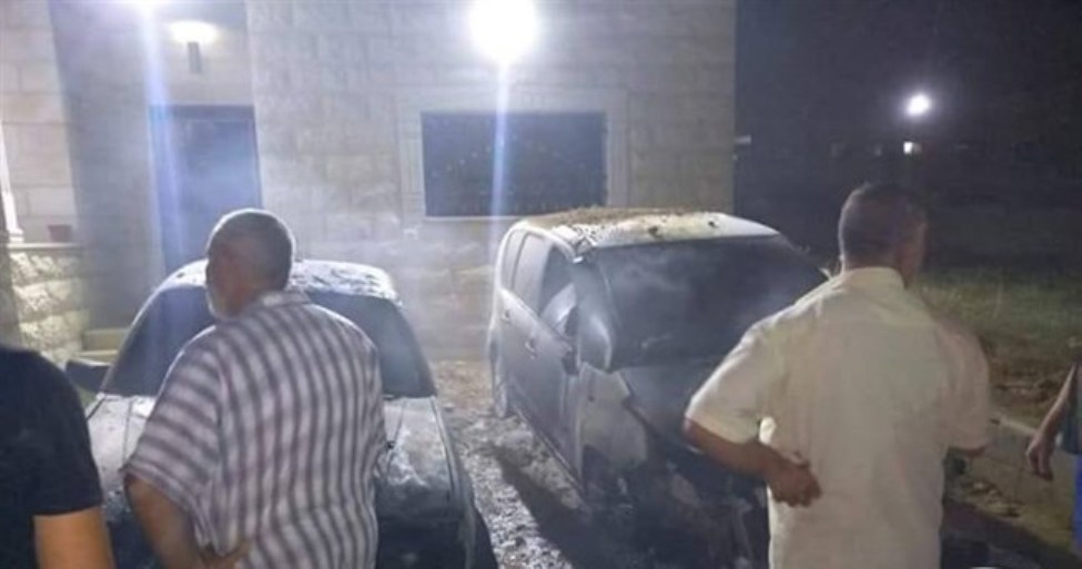 مستوطنون يحرقون سيارتين جنوب نابلس