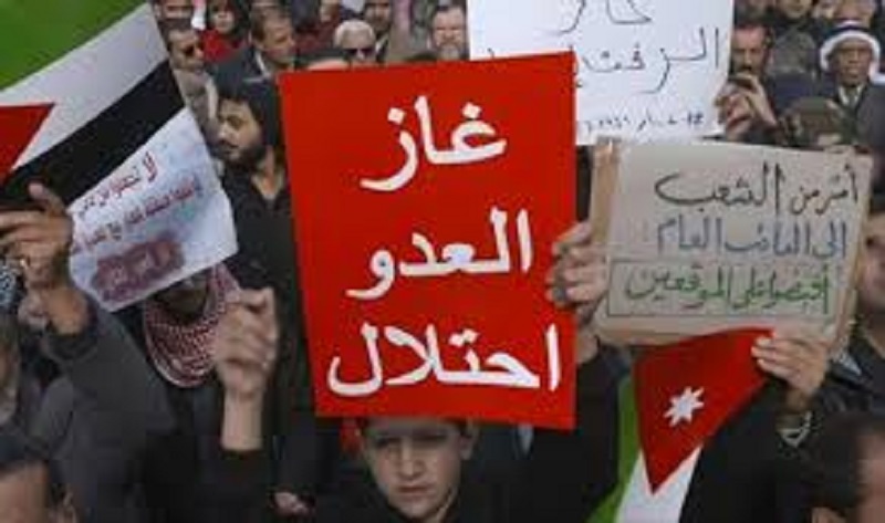 عمان: تظاهر مئات الأردنيين، اليوم، في شوارع العاصمة (عمان)، لدعوة الحكومة مرة أخرى إلى رفض استيراد الغاز من إسرائيل.