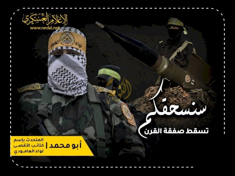 وأضافت الكتائب على لسان الناطق باسمها، أبو محمد، إننا في كتائب الأقصى"سنقدم دمائنا رخيصة في مواجهة صفقة العار، وفلسطين كل فلسطين التاريخية لنا وستبقى القدس الشريف عاصمتنا الأبدية".