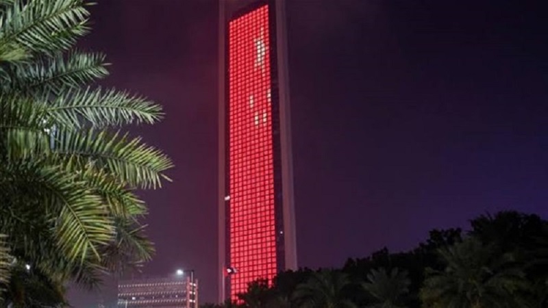 وفي حملة التضامن مع الصين التي انطلقت مساء اليوم وتستمر حتى منتصف الليل، أضاءت في أبوظبي مباني "الكابيتال جيت" وسوق أبوظبي العالمي وفندق قصر الإمارات وجسر الشيخ زايد بألوان العلم الصيني.