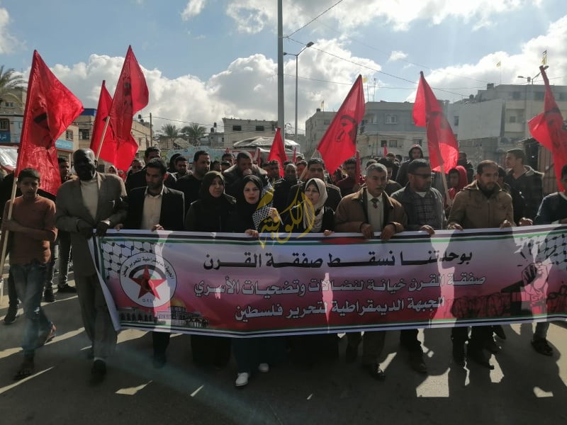 خانيونس: نظمت الجبهة الديمقراطية لتحرير فلسطين بشرق خان يونس، اليوم الثلاثاء، مسيرة جماهيرية حاشدة، انطلقت من دوار الشيخ ناصر وانتهت باعتصام جماهيري حاشد أمام مقر اللجنة الدولية للصليب الأحمر بخان يونس جنوبي قطاع غزة، رفضاً لـ"صفقة ترامب» ودعماً للحركة الأسيرة، بمشاركة حشد واسع من قيادة الجبهة بالمحافظة، وممثلي القوى الوطنية والإسلامية والفعاليات الشعبية والنقابية.