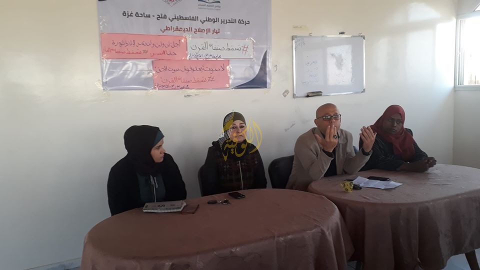 غزة: نفذ مجلس المرأة بتيار الإصلاح الديمقراطي، اليوم الخميس، لقاءً توعوية سياسيا بعنوان " صفقة القرن مخاطر وأبعاد".