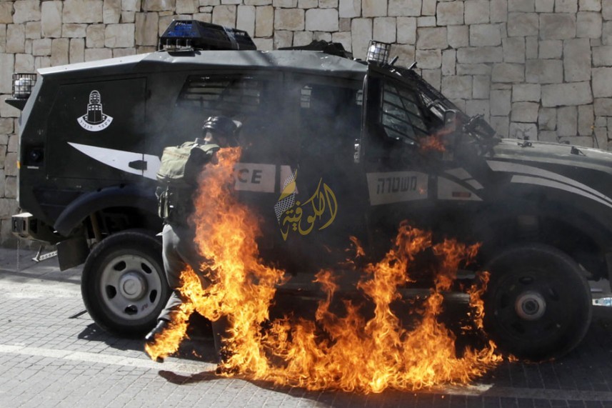 صورة|| إحراق جيب عسكري خلال مواجهات عنيفة في شعفاط