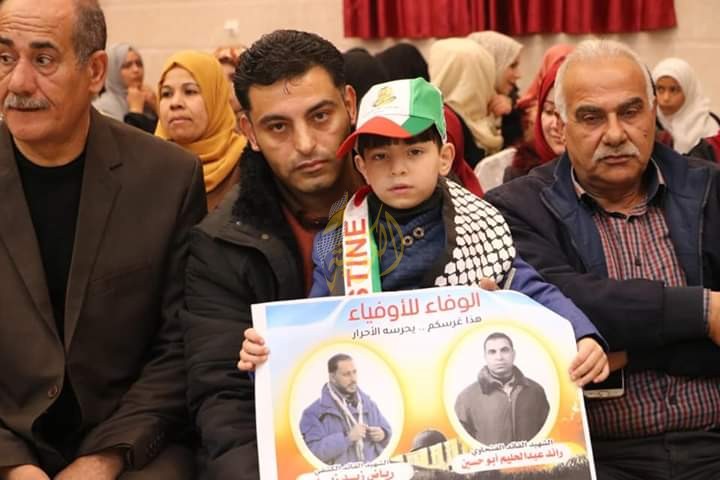 وحمل المشاركون في الاحتفالية صور الشهداء، وأعلام حركة فتح والأعلام الفلسطينية، وصور قائد تيار الإصلاح الديمقراطي محمد دحلان.