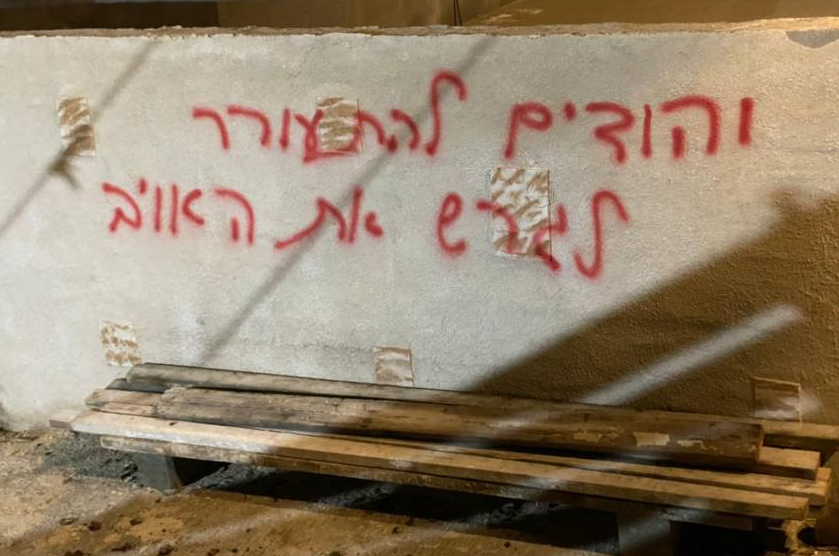 رام الله: خط مستوطنون، فجر اليوم الأربعاء، عبارات عنصرية على جدران منزل في بلدة بيتين شرق رام الله، ثم لاذوا بالفرار بعد انكشاف أمرهم.