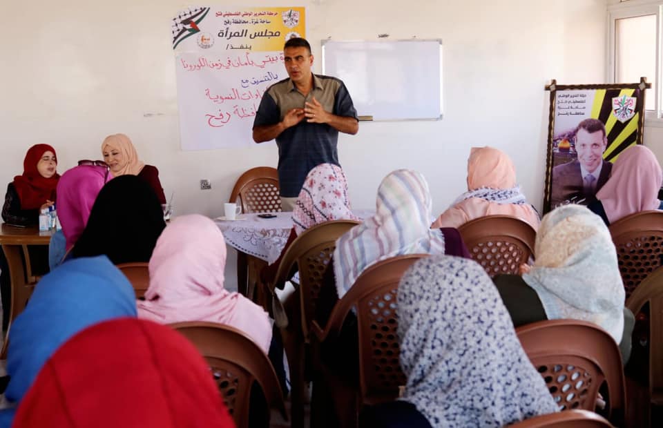 رفح: نظم مجلس المرأة في تيار الإصلاح الديمقراطي بحركة فتح، اليوم السبت، ورشة عمل في محافظة رفح، للتوعية بأخطار فيروس "كورونا" المستجد.