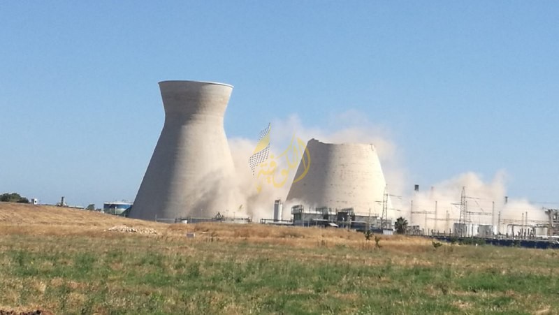 ونشرت وسائل الإعلام العبرية، صورا تظهر انهيار أحد أبراج التبريد في مصافي البترول في مدينة حيفا المحتلة.