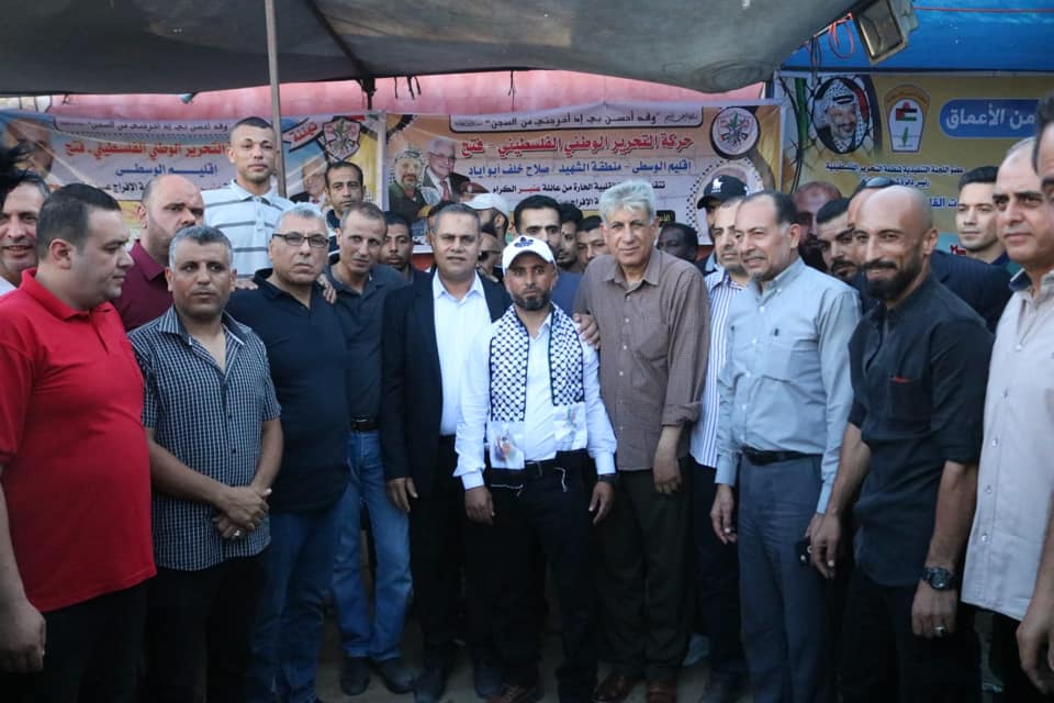 غزة: نظم تيار الإصلاح الديمقراطي في حركة فتح، زيارة إلى خيمة الأسير المحرر رامي عنبر، وسط قطاع غزة.