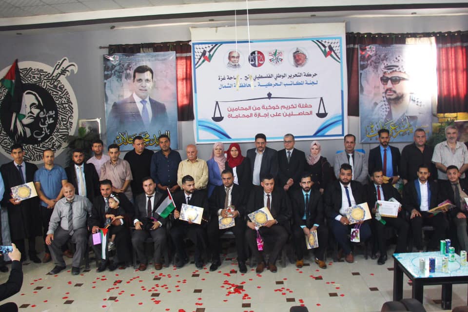 غزة: نظم المكتب الحركي للمحامين في تيار الإصلاح الديمقراطي بحركة فتح، اليوم الأحد، حفل تكريم لكوكبة من المحامين الحاصلين على مزاولة مهنة المحاماة، في محافظة شمال غزة، تزامناً مع يوم المحامي الفلسطيني.