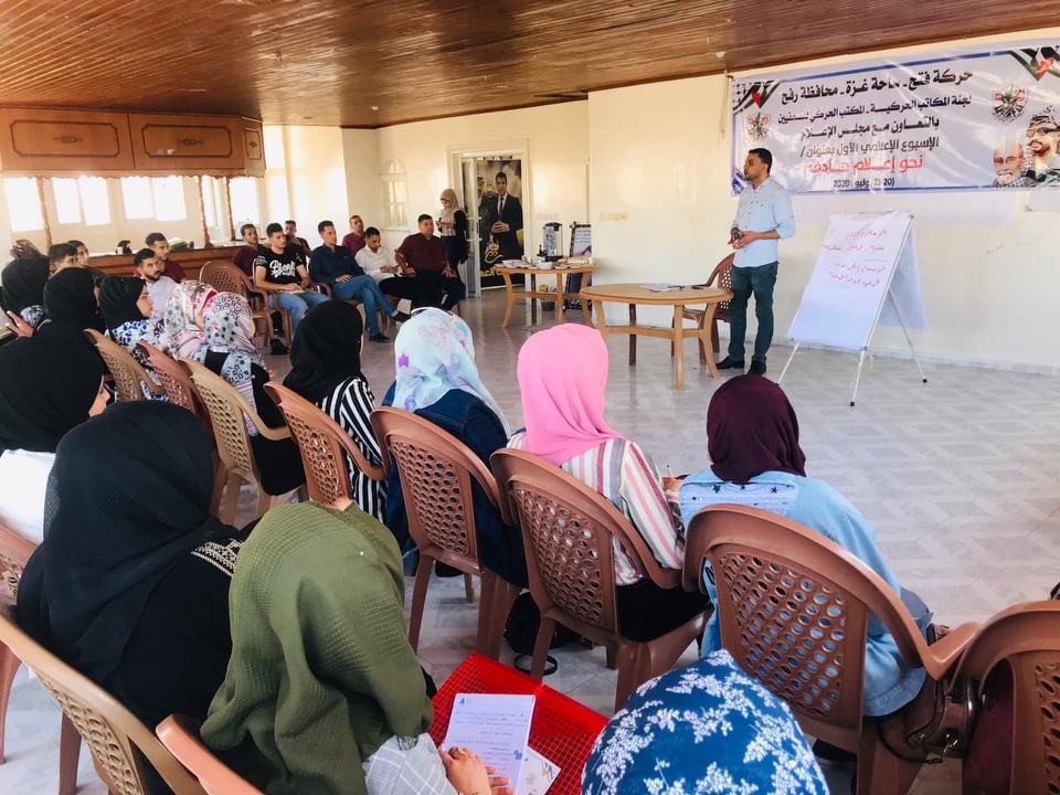 غزة: افتتح المكتب الحركي للصحفيين التابع لتيار الإصلاح الديمقراطي في حركة فتح و بالشراكة مع مجلس الإعلام الأسبوع الإعلامي دورة تدريبية برفح تحت عنوان ( نحو اعلام هادف )الذي يستهدف نخبة من خريجي الاعلام .