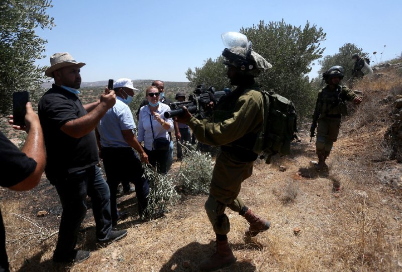 وأضافت المصادر، أن جنود الاحتلال اعتدوا على المتظاهرين السلميين في بلدة جبل صبيح".