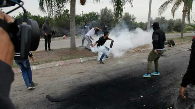 وأشارت مصادر محلية إلى أن مواجهات اندلعت بين شبان فلسطينيين وقوات الاحتلال بالقرب من مدرسة طارق التي تقع تحت السيطرة الأمنية الإسرائيلية، احتجاجا على إعدام الشهيد وائل الجعبري بدم بارد، أطلق جنود الاحتلال الأعيرة المطاطية، وقنابل الصوت والغاز السام في محيط المدرسة، ما تسبب بإصابة العشرات بحالات اختناق جراء استنشاق الغاز.