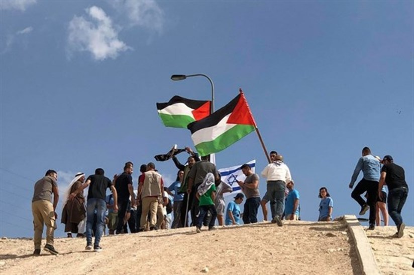 وحمل المستوطنون الأعلام الإسرائيلية، ورددوا الهتافات العنصرية، والداعية إلى طرد الفلسطينيين من المناطق البدوية الموجودة شرقي القدس المحتلة، من أجل بناء مزيد من المستوطنات في المنطقة.