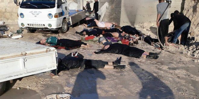 حميميم: أعلن مركز المصالحة الروسي في قاعدة حميميم الجوية شمال روسيا عن وصول فرق تصوير لعدة قنوات شرق أوسطية وقناة أميركية إلى جسر الشغور لتصوير هجوم كيميائي مزعوم في جسر الشغور.