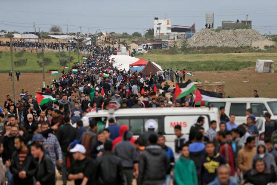 وبدأ المتظاهرون بإشعال الإطارات المطاطية على طول الحدود الشرقية لقطاع غزة حيث انطلقت عشرات الدراجات النارية في موكب كبير يحمل مئات إطارات "الكوشوك" من وسط المحافظة الجنوبية رفح اتجاه الحدود ومخيمات العودة.