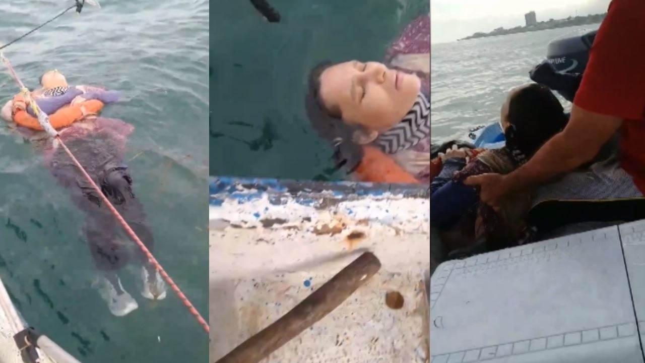 ووثق الصياد "رولاندو فيسبال" لحظة العثور على المرأة المنهمكة جسديًا، صدفةً، أثناء إبحاره في المياه؛ حتى خروجها من البحر سالمة.
