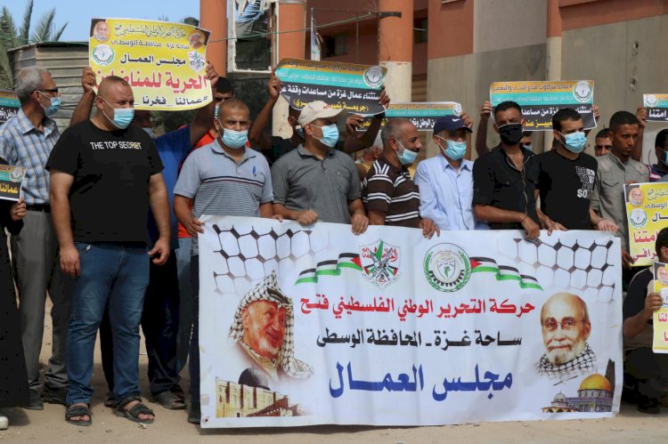 خاص بالفيديو والصور|| مجلس العمال في المحافظة الوسطى ينظم وقفة احتجاجية للمطالبة بحقوق عمال غزة
