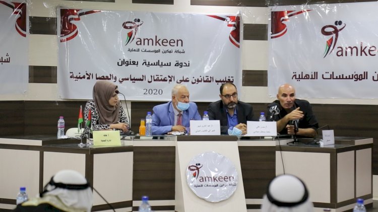 جاء ذلك خلال ندوة سياسية عقدتها شبكة تمكين المؤسسات الأهلية تحت عنوان "تغليب القانون على الاعتقال السياسي والعصا الأمنية"، بحضور شخصيات مجتمعية ومخاتير وعدد من رؤساء ومجالس الادارة في الجمعيات الاهلية لمناقشة تغول أجهزة السلطة على المخيمات الفلسطينية في الضفة الفلسطينية المحتلة.