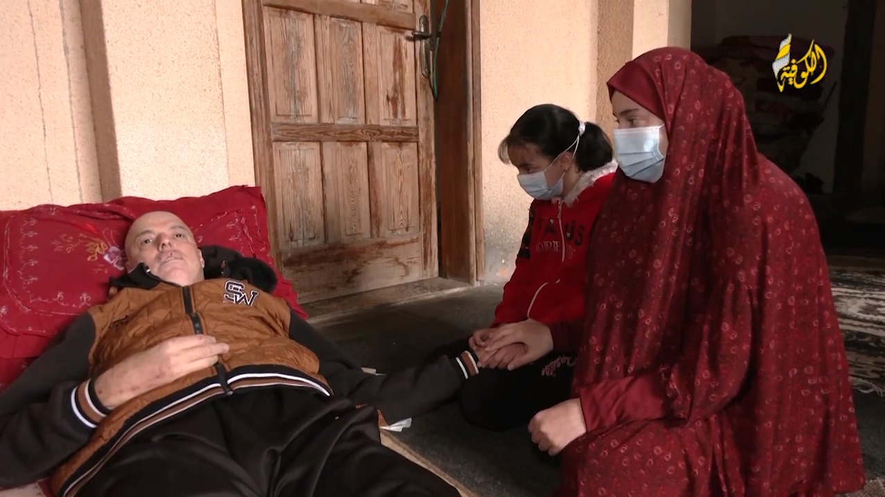 غزة – عمرو طبش: داخل كل بيت قصة، وخلف كل جدار حكاية، في مدينة خانيونس جنوب قطاع غزة تختلف هذه الحكايات عن باقي مثيلاتها، حيث يفترش أبو أسامة سرير المرض الذي أنهك جسده، يصرخ بصوتٍ يعتصره الوجع والألم "يا أسامة افتح الشبابيك مش قادر أتنفس أنا بموت"، يهرع أسامة مسرعاً لفتح تلك النوافذ حتى ينقذ والده الذي يوشك أن يفقد حياته في أي لحظة، وبنظرات يملؤها الألم والحسرة، ينظر الأطفال إلى والدهم، الذي يعجز عن فعل أي شيء، لمعاناته من مرض السرطان في أمعائه.