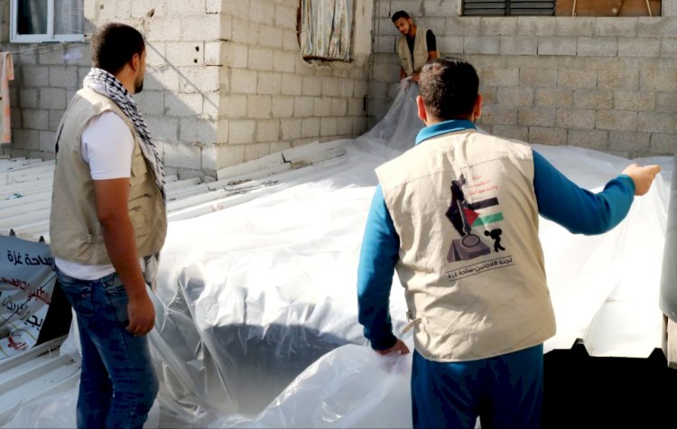 بالصور|| لجنة اللاجئين برفح تستكمل مبادرة "دائما معكم" لتغطية عدد من منازل الأسر المتعففة