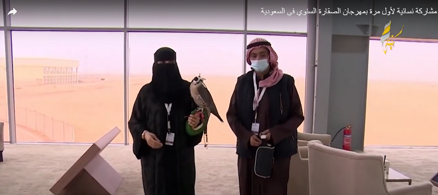 بالفيديو|| مشاركة نسائية لأول مرة بمهرجان الصقارة السنوي في السعودية