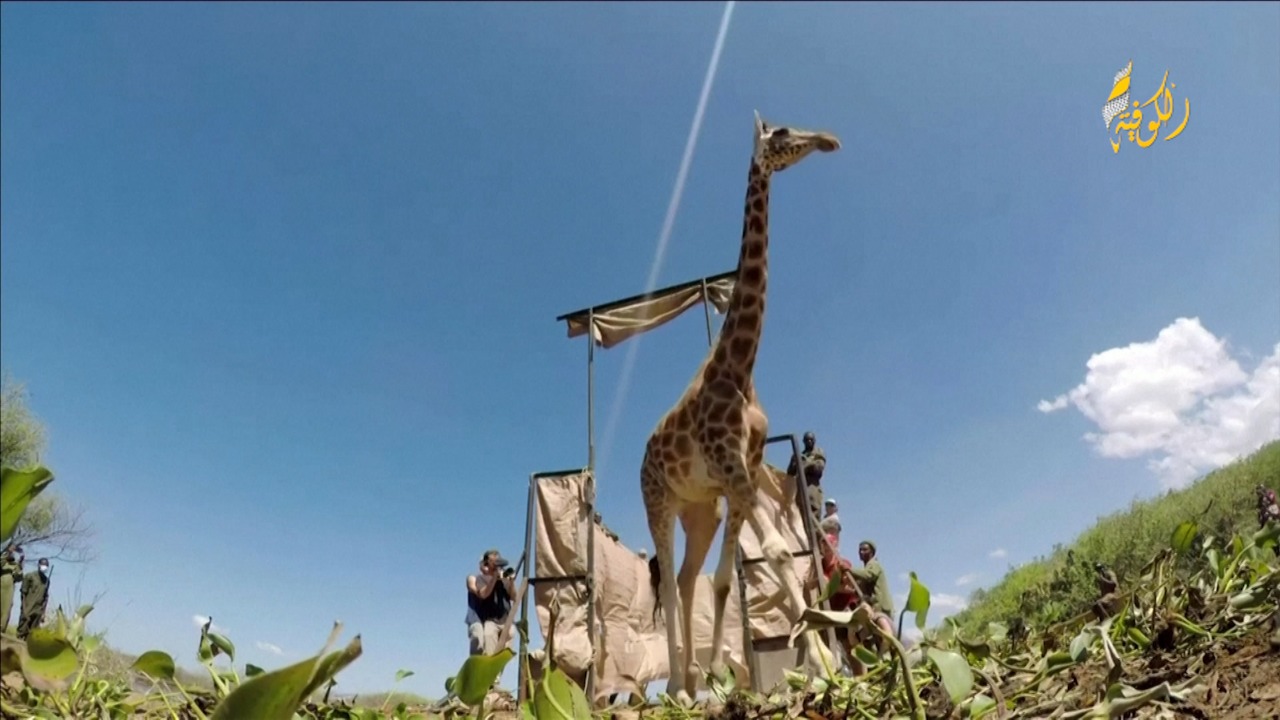 بالفيديو|| لحظة إنقاذ زرافة نادرة من الغرق بسبب الفيضانات في كينيا