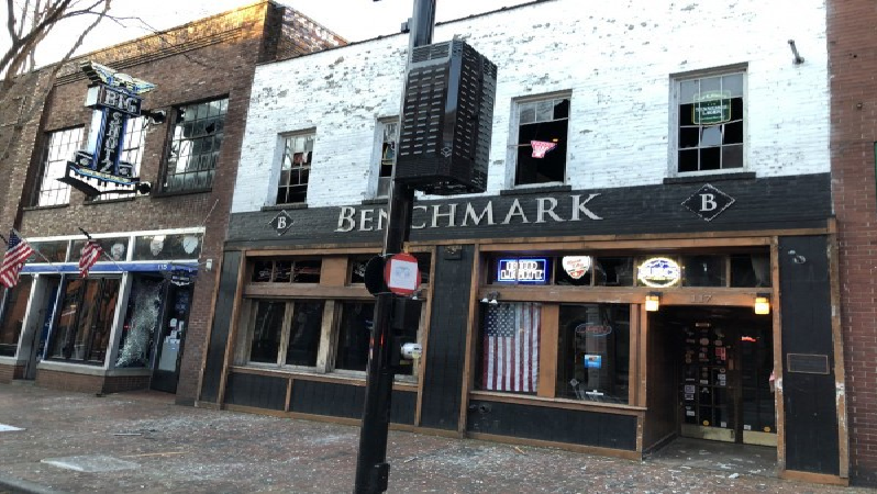 وقال مكتب إدارة الطوارئ لوسائل الإعلام إن حافلة (منزل متنقل) متروكة في وسط المدينة انفجرت في الساعة الـ 6:30 من صباح اليوم، ما ألحق ضررا بعدد من المباني في الحي.