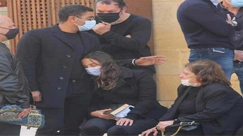 وانهارت زوجة آسر ياسين في جنازة والدتها، فيما حرص على مواساة زوجته الباكية،  والحاملة لنسخة من القرآن الكريم.