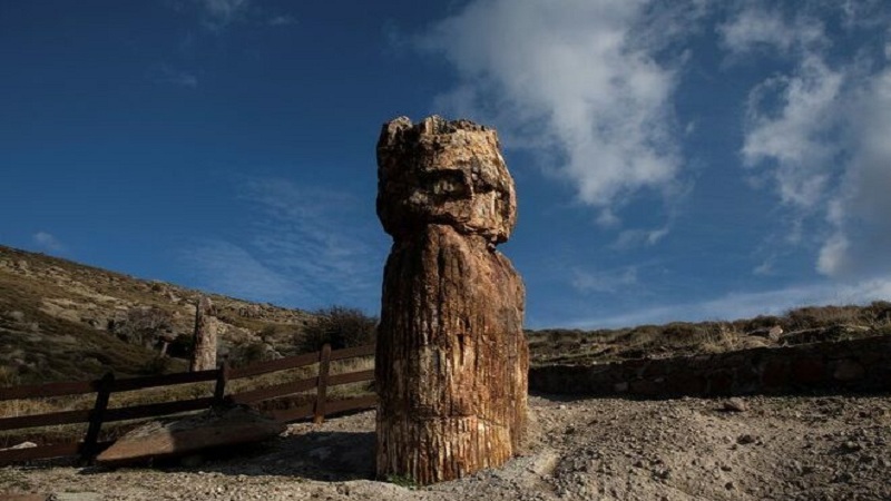 وتمتد الغابة المتحجرة في ليسبوس على مساحة نحو 37 ألف فدان وهي موقع مدرج ضمن قائمة التراث العالمي لمنظمة الأمم المتحدة للتربية والعلم والثقافة (يونسكو)، وتكونت نتيجة ثوران بركاني قبل 20 مليون عام غطى الغابة شبه الاستوائية بالجزيرة حينئذ بالحمم البركانية.
