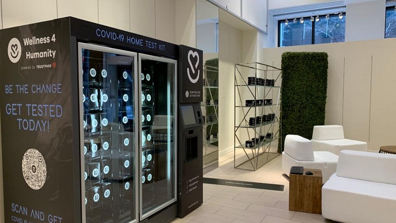 وتوفر ماكينات البيع الفوري اختبارات من فئة RT-PCR للكشف عن فيروس كورونا باستخدام اللعاب، الحاصلة على إيجاز استخدام الطوارئ من قبل إدارة الغذاء والدواء الأميركية