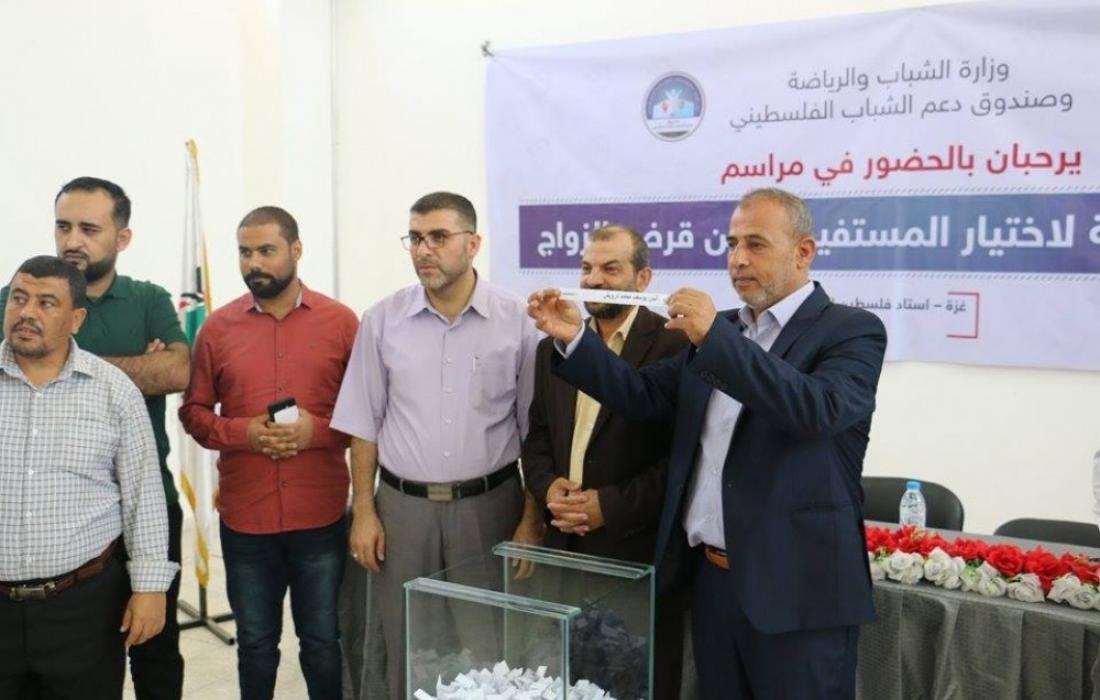 وأوضح صندوق دعم الشباب أنه جرى اختيار (100) شابًّا من المقبلين على الزواج من خلال نظام القرعة العلنية، بحضور رئيس الصندوق أحمد محيسن، وأعضاء مجلس ادارة الصندوق الأستاذ زكي مدوخ، ومحمود أبو صالح، ومدير الصندوق علاء الباز، والمدير العام للعمل الأهلي والآداب سامي أبو وطفة، ومدير المشاريع المهندس رائد عوض.