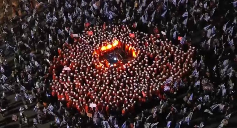 ونظمت التظاهرة قبل وقت قصير من بدء المحكمة العليا "الإسرائيلية" جلستها الثانية، للنظر في التماسات قدمت ضد قانون "التحصين" الذي أقره الكنيست، بهدف منع المساس بنتنياهو من خلال سجنه تحت أي تهمة من قبل المحكمة العليا نفسها.