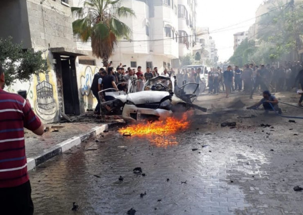 ونوه مراسلنا إلى اشتعال النيران بالسيارة التي قصفها الاحتلال بالقرب من مستشفى الصليب الأحمر على شاطئ بحر رفح.