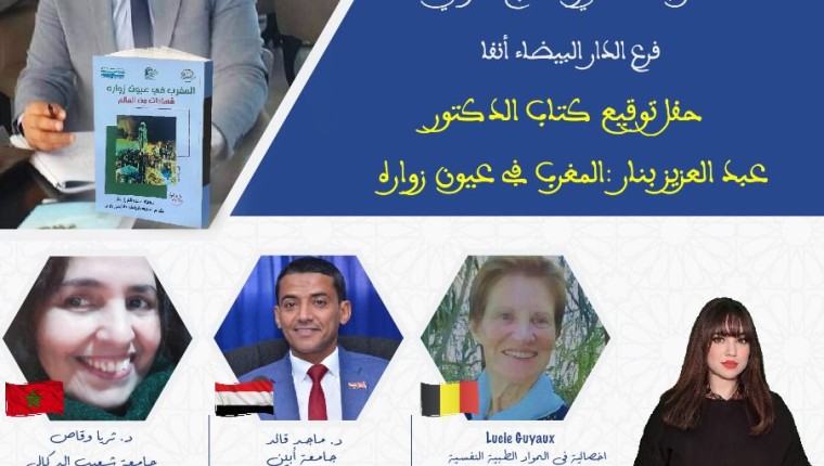 كما سيعرف يوم 4 فبراير/ شباط صباحا حفل توقيع كتاب الدكتور المغربي عبد العزيز بنار : المغرب في عيون زواره بمكتبة المركز الثقافي بحضور الدكتور ماجد قائد من اليمن والدكتورة ثريا وقاص والأخصائية لوسي كورو من بلجيكا مع حضور مجموعة من الأدباء المغاربة على رأسهم القاص انيس الرافعي