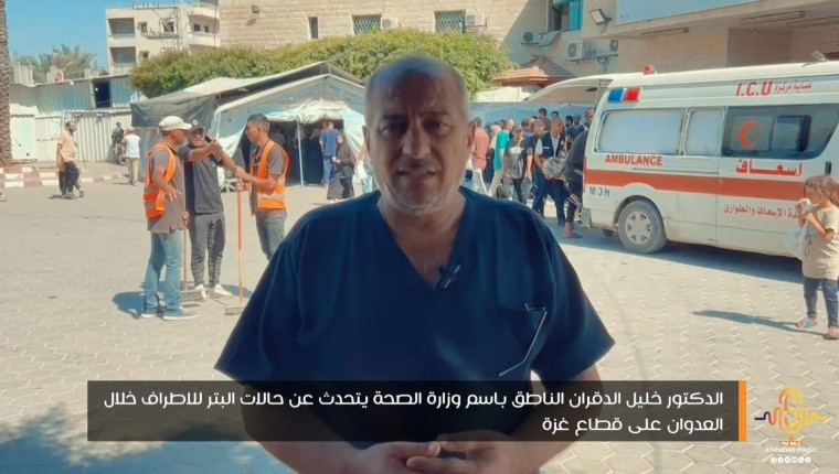 الدكتور خليل الدقران الناطق باسم وزارة الصحة يتحدث عن حالات البتر للاطراف خلال العدوان على قطاع غزة