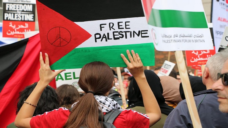 وطالب المتظاهرون بضرورة الضغط على إسرائيل لوقف العدوان وإلزامها باحترام القانون الدولي والكف عن انتهاك حقوق الشعب الفلسطيني.