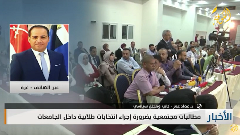 غزة: دعا الكاتب والمحلل السياسي، د. عماد عمر، الكتل الطلابية في غزة إلى الضغط على إدارات الجامعات لإجراء الانتخابات.