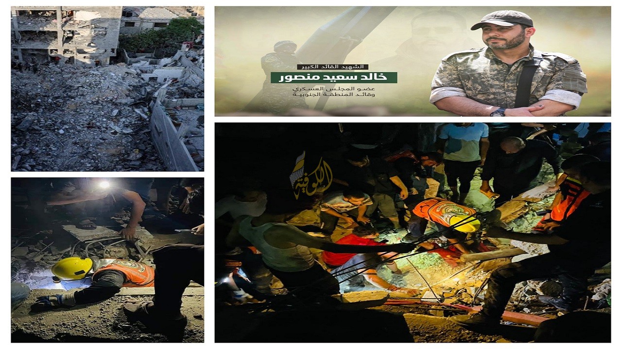 وبعد ساعات طويلة واصلت طواقم الدفاع المدني، عملية انتشال المصابين والشهداء، الذين كان من بينهم استشهاد قائد اللواء الجنوبي في سرايا القدس الجناح العسكرية لحركة الجهاد الإسلامي خالد منصور.