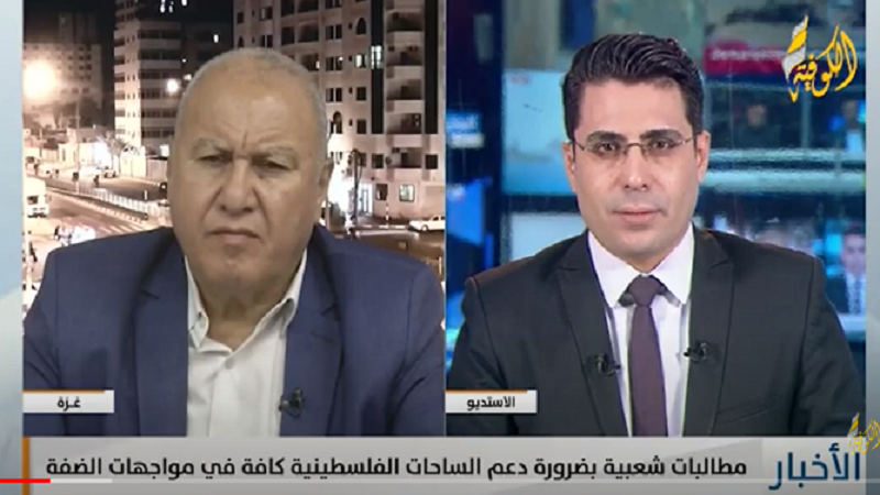 وأضاف في مقابلة على قناة «الكوفية»، أن "الشعب الفلسطيني جزء أساسي من محور النضال"، داعيًا السلطة الفلسطينية إلى القيام بدورها في حماية أبناء الشعب الفلسطيني، والدفاع عنه.