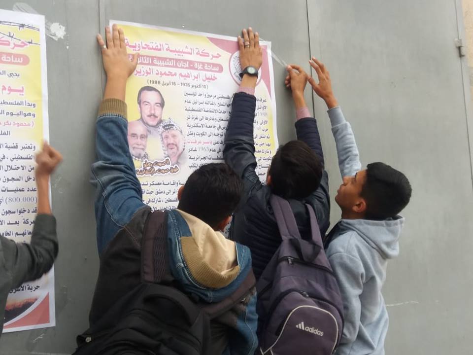 الكوفية وقامت لجان الشبيبة الثانوية في مدارس القطاع بتعليق بوسترات للشهيد القائد خليل الوزير أبو جهاد تحمل نبذة عن سيرته النضالية ، وبوسترات أخرى تعطي نبذة عن يوم الأسير الفلسطيني.