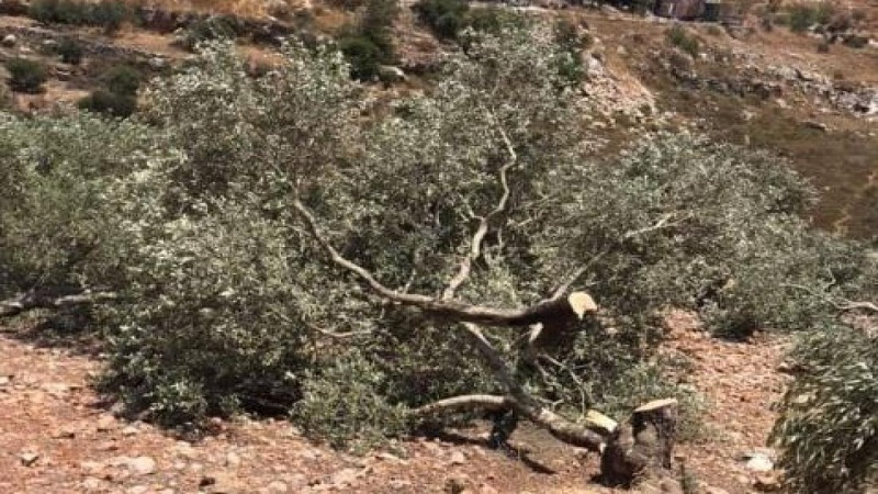 الكوفية الخليل - أقدم مستوطنون، يوم الأربعاء، على تقطيع وتكسير عشرات اشجار الزيتون المثمرة ، في واد سعير شمال الخليل جنوبي الضفة المحتلة.