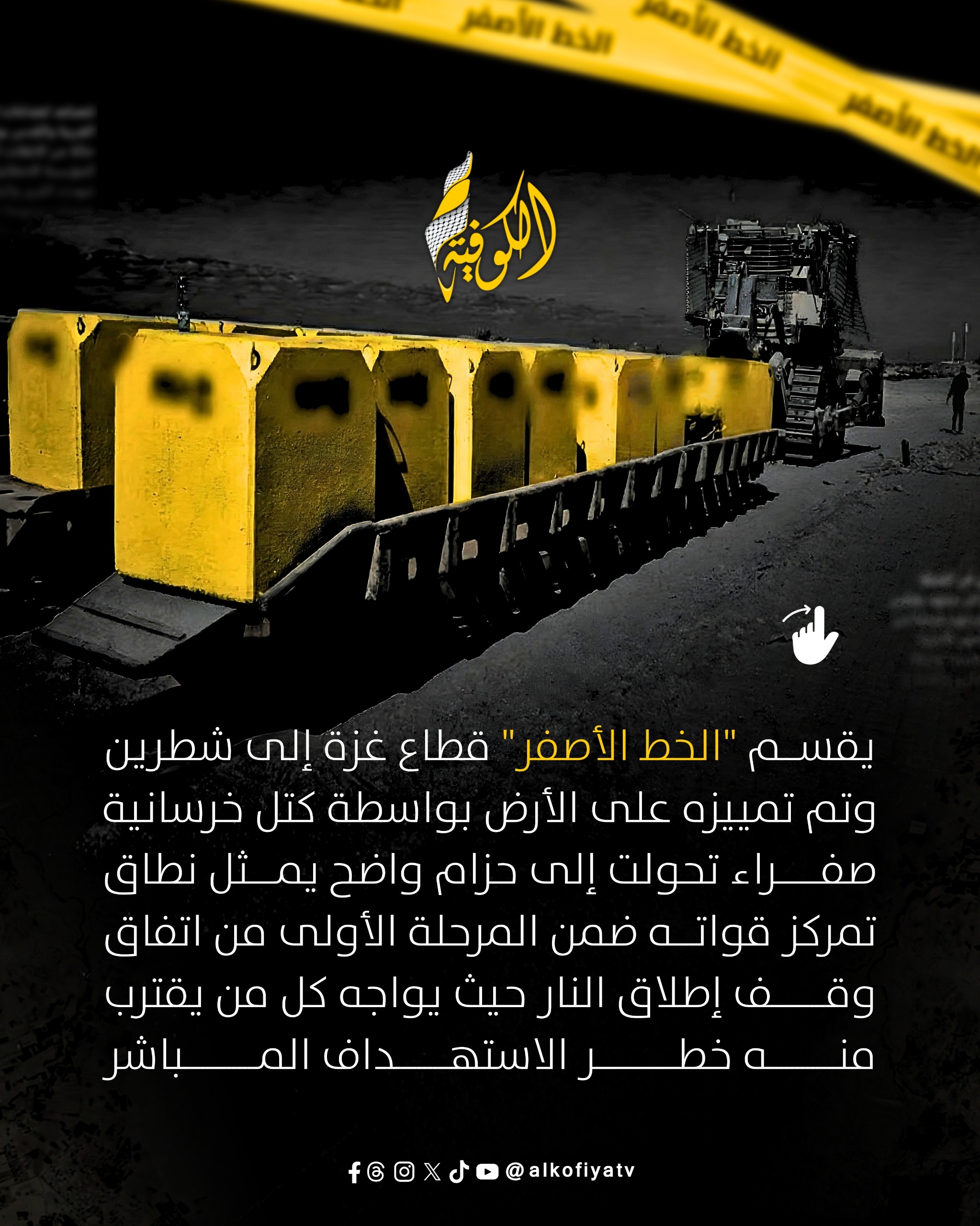 الكوفية وثقت مراكز حقوقية إقدام الاحتلال على التوسيع المتكرر لنطاق الأراضي الخاضعة لسيطرته ضمن الخط الأصفر حيث ارتفعت نسبة هذه الأراضي من ٥٣ % إلى أكثر من ٦٠ % في غضون الأسابيع الثلاثة الماضية،