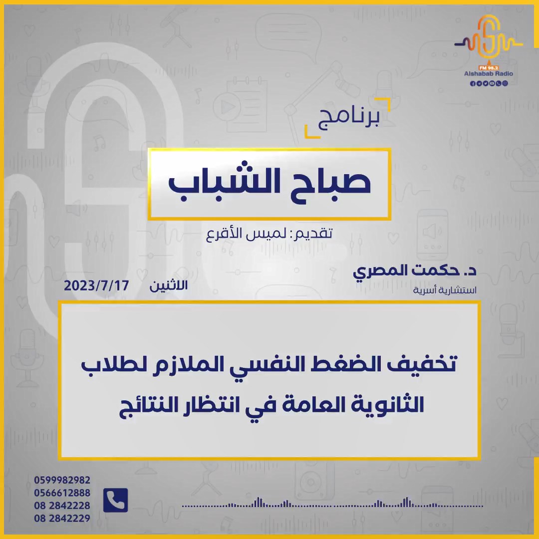 د. حكمت المصري || تخفيف الضغط النفسي الملازم لطلاب الثانوية العامة في انتظار النتائج